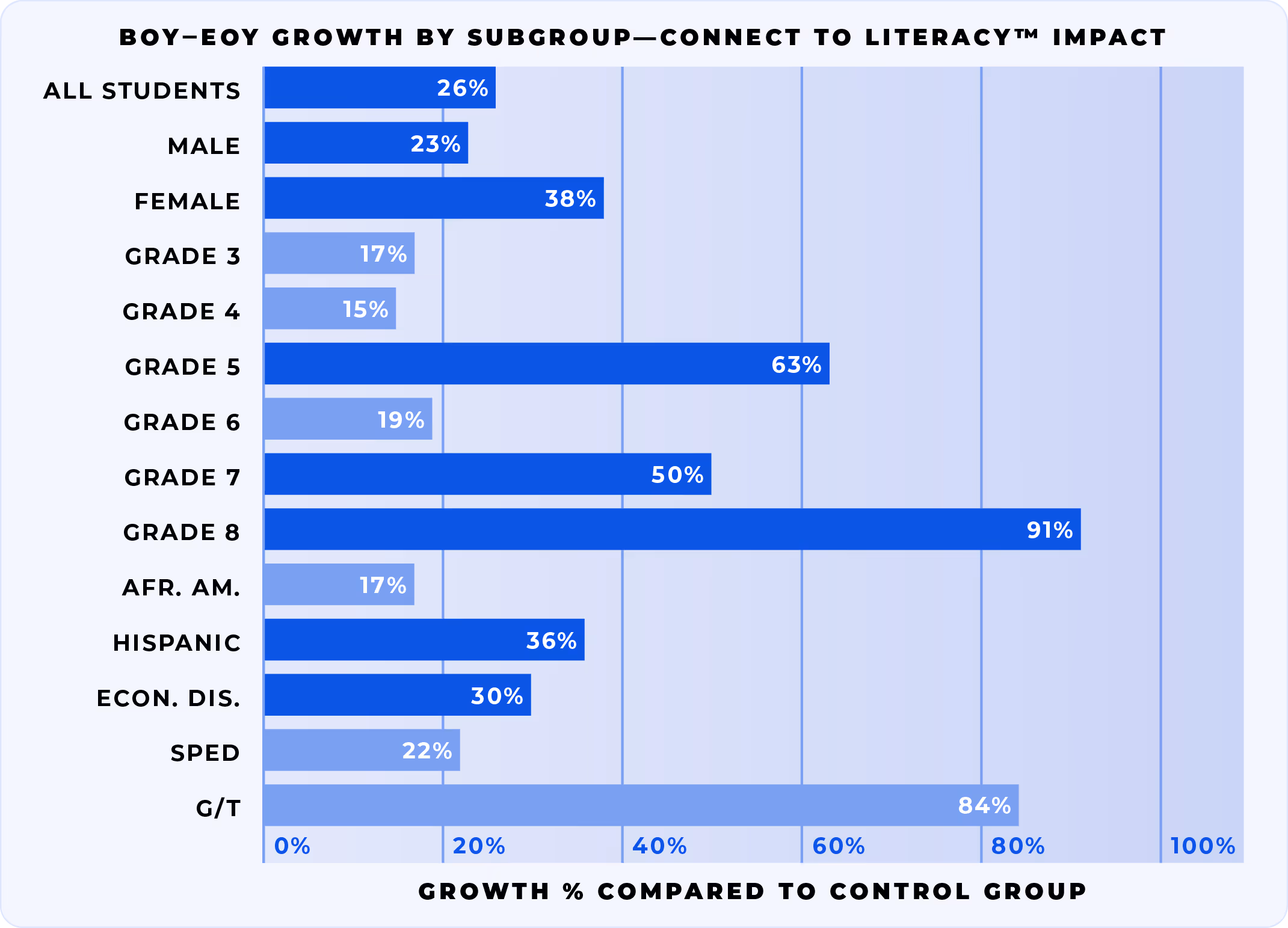 Budgets are being reduced. This district is dropping programs that don’t deliver results and is scaling Connect to Literacy™ across every campus—because results like these can’t wait.